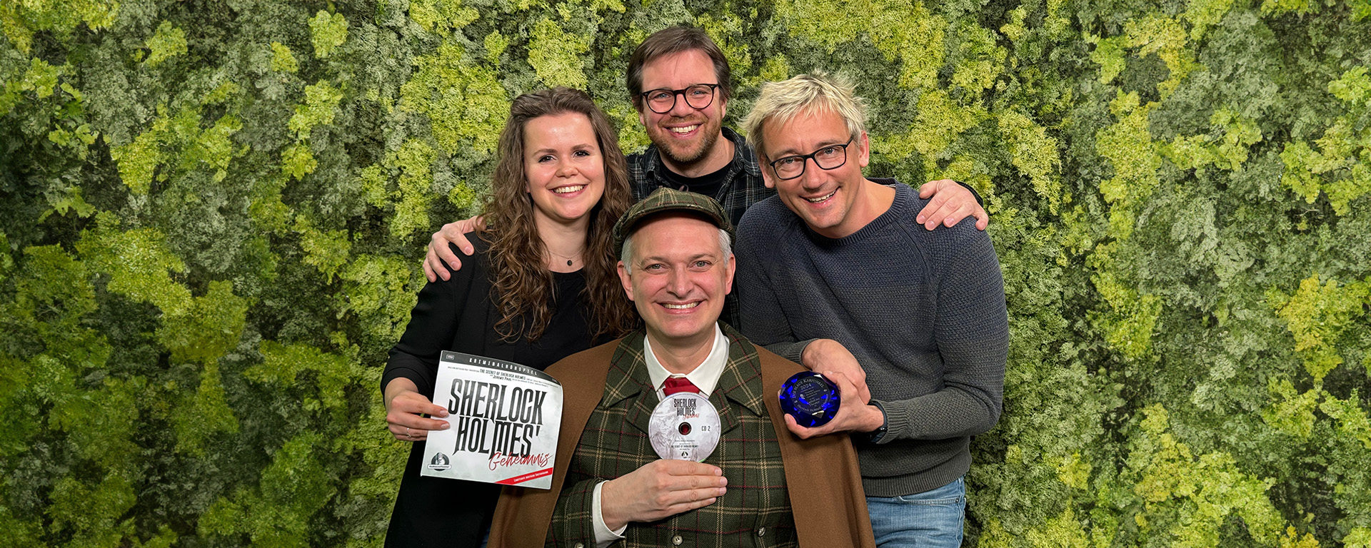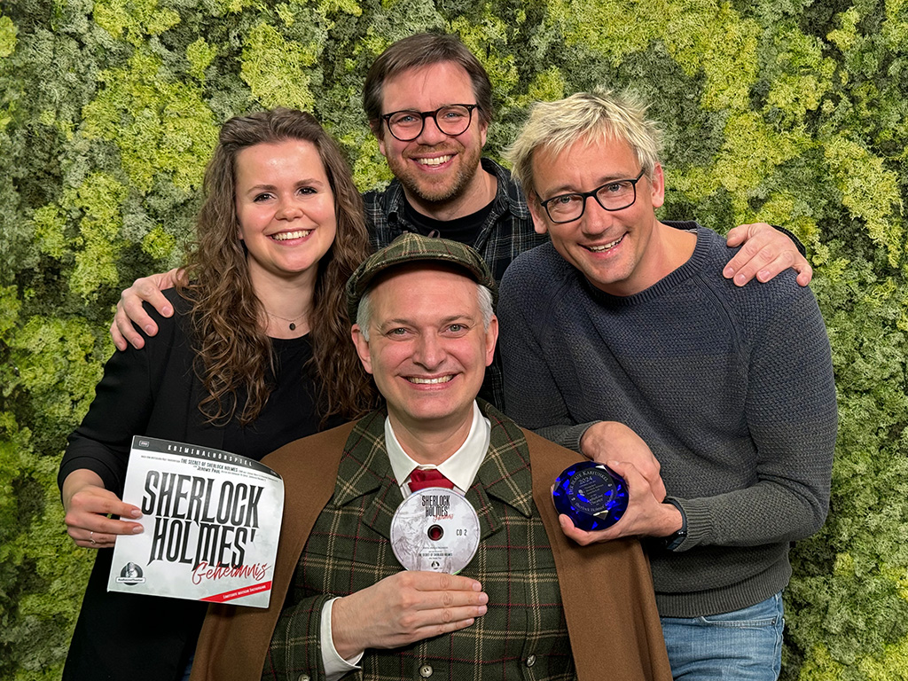 Auch dauerte es fast zwei Jahre, die Nachfahren und Rechteinhaber zu recherchieren. „Das war wie ein eigener Sherlock-Holmes-Fall“, lacht Krückemeyer. Das RLT darf sich nun neben bisherigen Preisträgern wie Bastian Pastewka oder Der Audio Verlag einreihen. „Aber wie kommen wir jetzt nur an eine Auszeichnung für ‚Sherlock und der Hund der Baskervilles‘ ran?“, feixt Schauspieler und Komponist Sebastian W. Wagner über die neue bereits veröffentlichte Hörspiel-CD des RLTs. Da heißt es wohl abwarten.